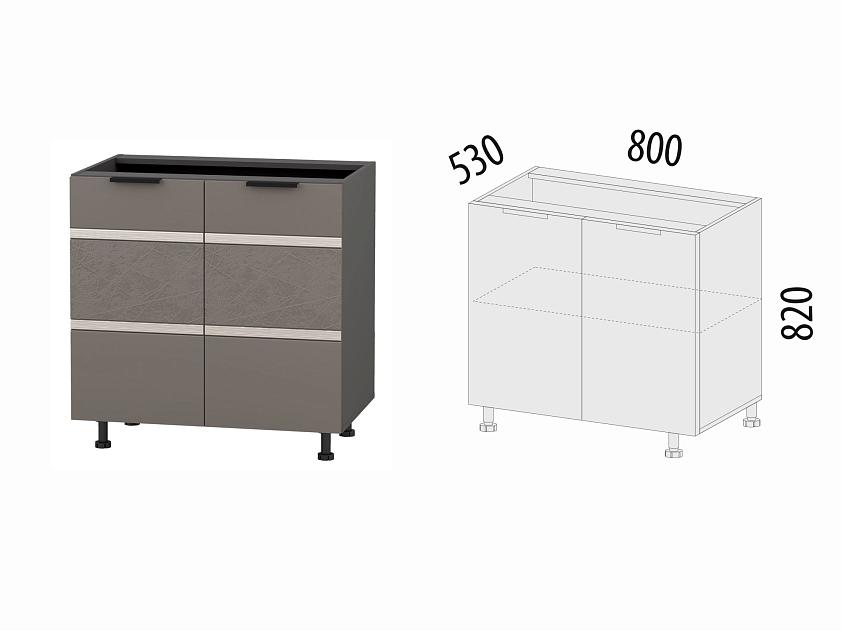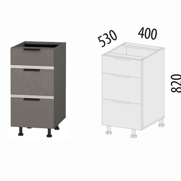Высота напольных шкафов составляет 820 мм (без столешницы), что обеспечивает комфортный процесс приготовления пищи и позволяет установить встроенную бытовую технику (например, посудомоечную машину).