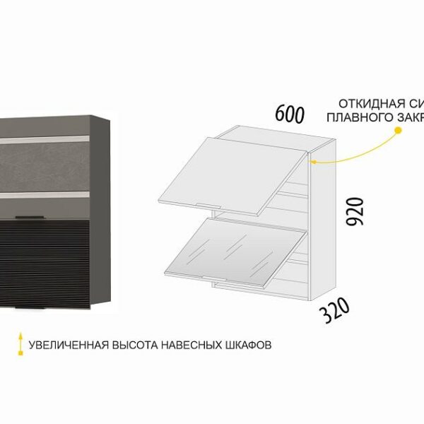 Модуль оснащен петлями с доводчиками для бесшумного открывания и закрывания дверец.