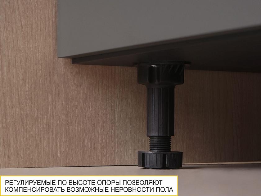 Ножки модуля регулируются по высоте, что позволяет при установке напольного шкафа компенсировать возможные неровности пола.
