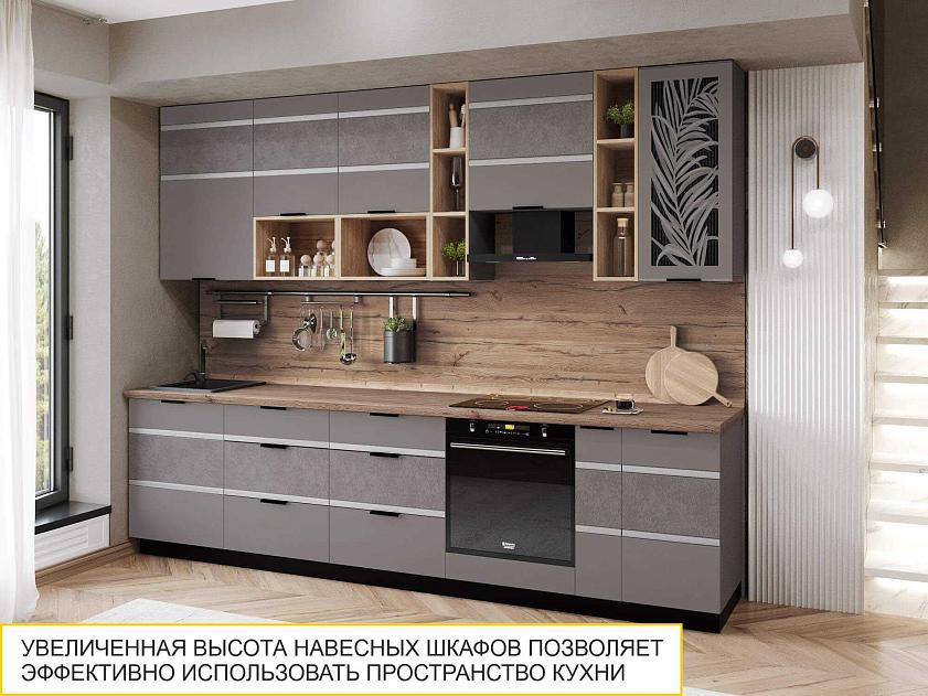 Высота напольных шкафов составляет 820 мм (без столешницы), что обеспечивает комфортный процесс приготовления пищи и позволяет установить встроенную бытовую технику (например, посудомоечную машину).