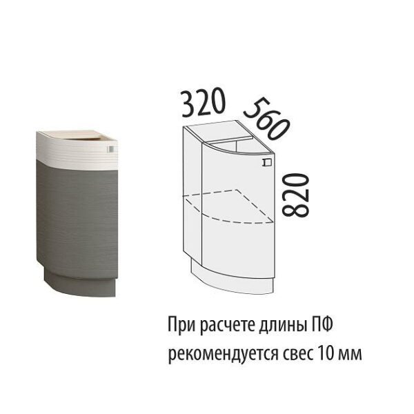 Плавное закрывание дверцы обеспечивают петли с доводчиками. Ножки регулируются по высоте, что позволяет при установке компенсировать возможные неровности пола. Модуль является универсальным и может быть собран как с левым, так и с правым открыванием дверцы. Глубина стола с учетом столешницы 600 мм. Технологический зазор от стены, который останется после установки стола со столешницей, позволит визуально скрыть трубы, крупные розетки и плинтусы.