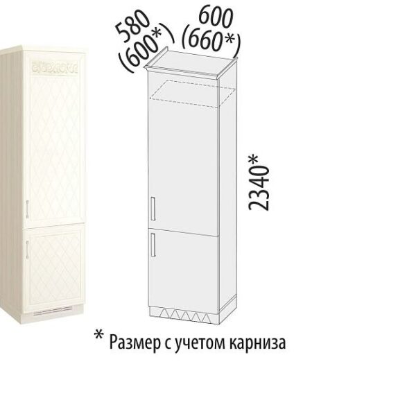 Ножки регулируются по высоте, что позволяет при установке компенсировать возможные неровности пола. Глубина стола с учетом столешницы – 600 мм. Технологический зазор от стены, который останется после установки стола со столешницей, позволит визуально скрыть трубы, крупные розетки и плинтусы. Модуль декорирован фрезеровкой и оригинальным рисунком патиной. Изящная металлическая ручка идеально гармонирует с мебелью.