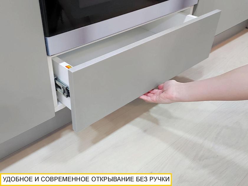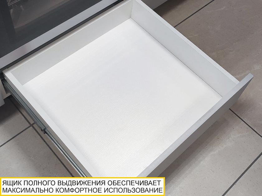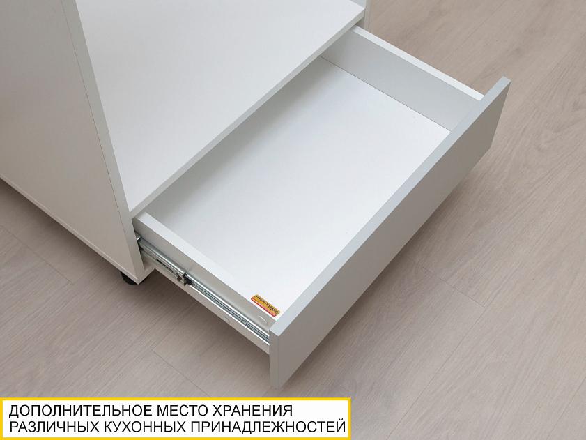 В напольном шкафу под встраиваемую технику предусмотрен ящик, который является дополнительным местом для хранения различных кухонных принадлежностей.