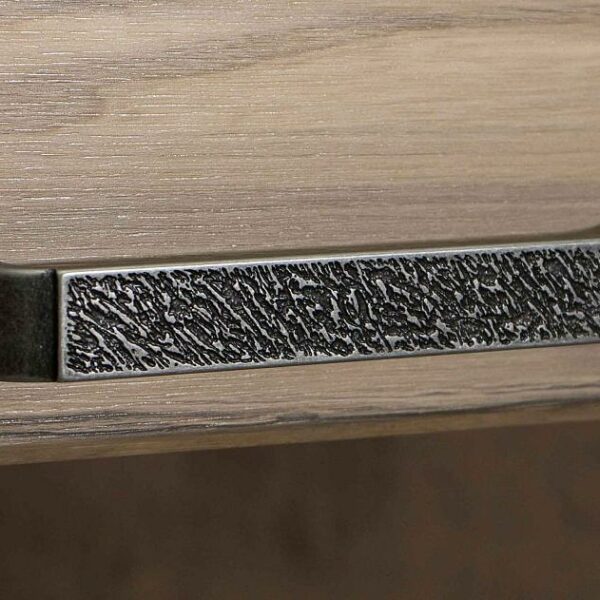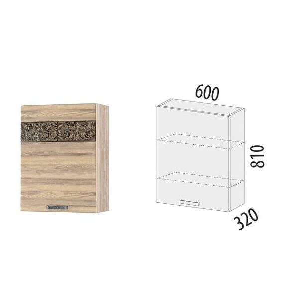 Фасад декорирован вставкой, точно передающей фактуру натурального дерева: как на ощупь, так и визуально. Патинирование придает изделию благородный внешний вид.