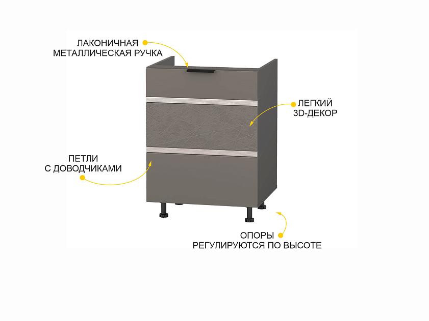 Ножки модуля регулируются по высоте, что позволяет при установке напольного шкафа компенсировать возможные неровности пола.
