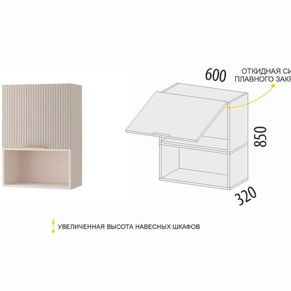 Высота напольных шкафов составляет 820 мм (без столешницы), что обеспечивает комфортный процесс приготовления пищи.