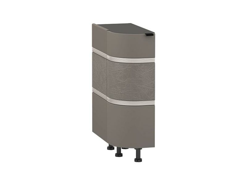 Боковая наружная стенка из МДФ оформлена объемным 3D-декором с геометрическим рисунком и металлизированной вставкой, что придает визуальную целостность радиусному фасаду.