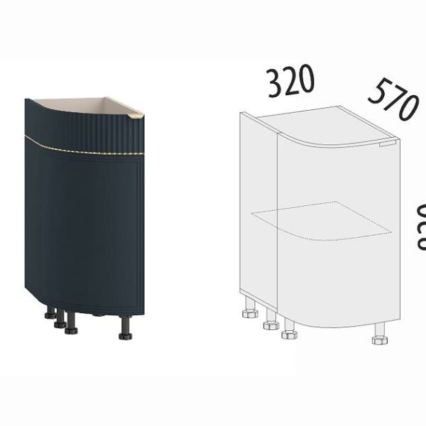 Ножки модуля регулируются по высоте, что позволяет при установке напольного шкафа компенсировать возможные неровности пола.