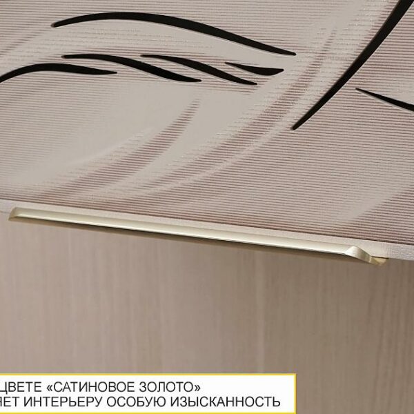 Гармонично подобранные цвета создают ощущение уюта и спокойствия, а акцентные ручки и оригинальная металлическая пластина в цвете «сатиновое золото» придают мебели роскошный вид.