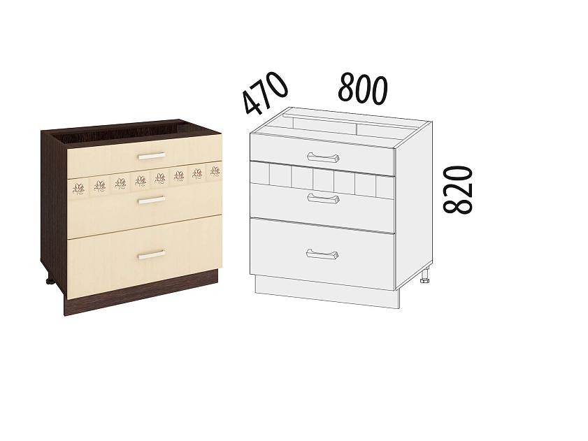 Стол с тремя ящиками «Аврора 10.67.2» является частью модульного набора для кухни «Аврора».