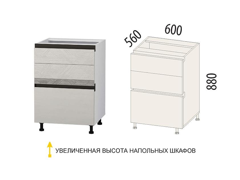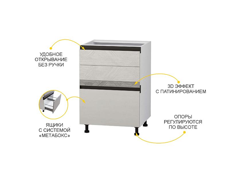 Напольный шкаф (3 ящика с доводчиком Titusoft MD) «Бостон 61» является частью модульной программы для кухни «Бостон».