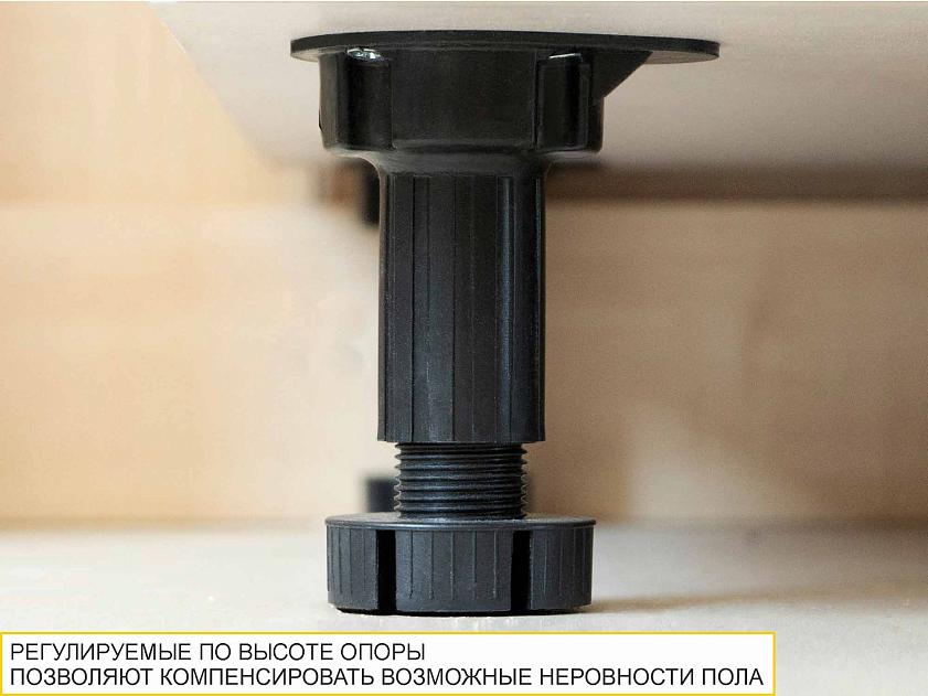Ножки модуля регулируются по высоте, что позволяет при установке напольного шкафа компенсировать возможные неровности пола.