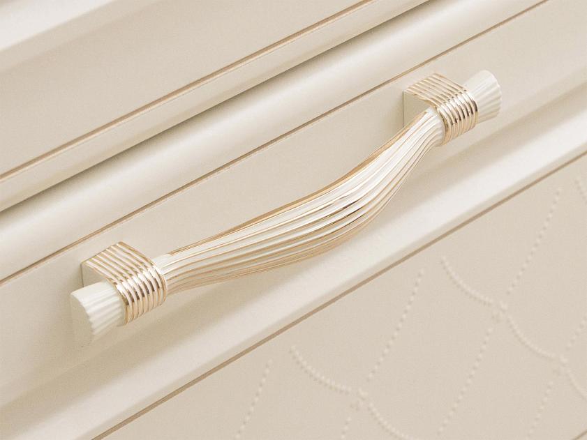 Оригинальная фрезеровка на фасадах с изящными гнутыми ручками придает кухне изысканный внешний вид.