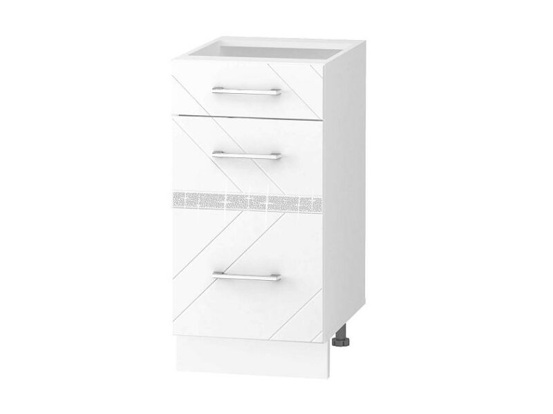 Напольный шкаф с тремя ящиками «Бьянка 102.90» является частью модульного набора для кухни «Бьянка».