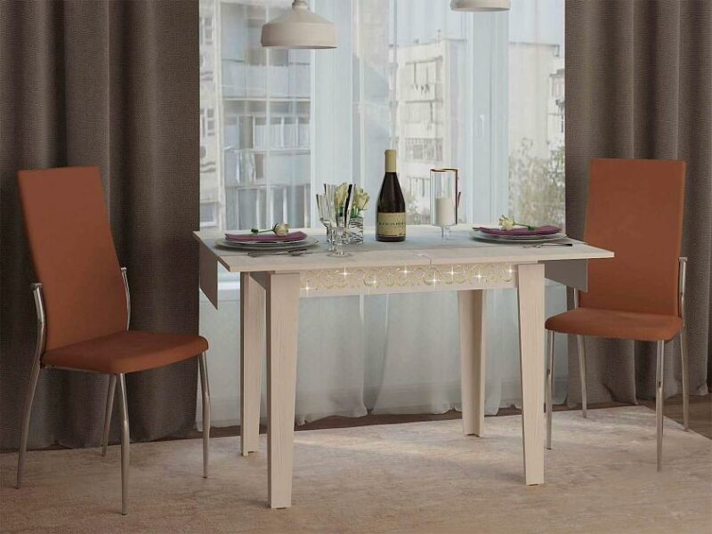 С помощью механизма «Поворот и откидывание столешницы» поверхность стола увеличивается вдвое.
