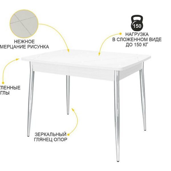 Обеденный стол «Орфей 48» надежен и безопасен в эксплуатации. Столешница произведена из МДФ. Материал обладает высокой плотностью и экологичностью. Скругленные углы столешницы уберегают от травм. Гарантия на стол – 8 лет. Это больше, чем по ГОСТу.