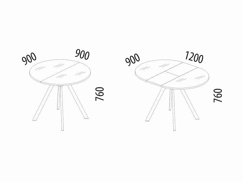 За одну цену Вы получаете два стола. В сложенном виде – это компактный круглый стол диаметром 90 см, в разложенном – овальный стол с размером столешницы 90х120 см.