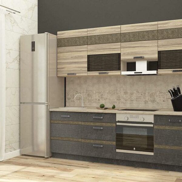Кухня «Дакота» – воплощение современных тенденций и неповторимого стиля. Сдержанная цветовая гамма в сочетании с древесной текстурой дуба подарят ощущение тепла и уюта Вашему дому,
