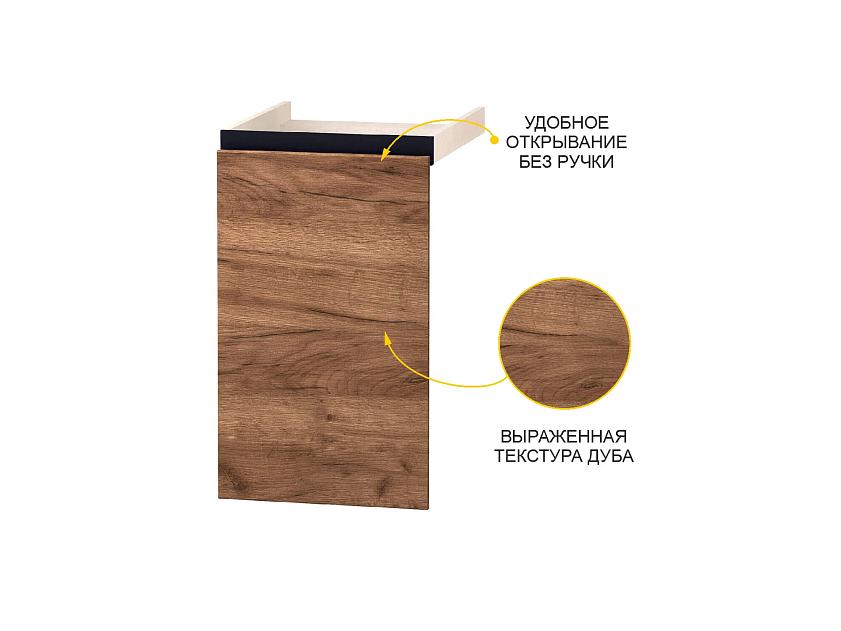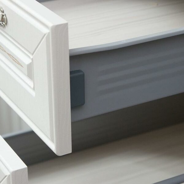 Отсутствие лицевой фурнитуры подчеркивает современный дизайн мебели.