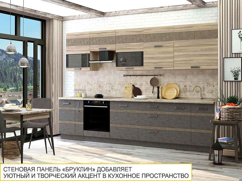 Стеновая панель «Бруклин» выполнена в теплых приглушенных оттенках бежевого и серого цвета. Винтажный эффект придает интерьеру особый шарм и душевность.