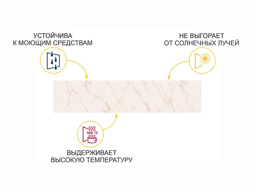 Текстура бежевого мрамора с её естественными прожилками и переливами придает кухне необычный и стильный вид.