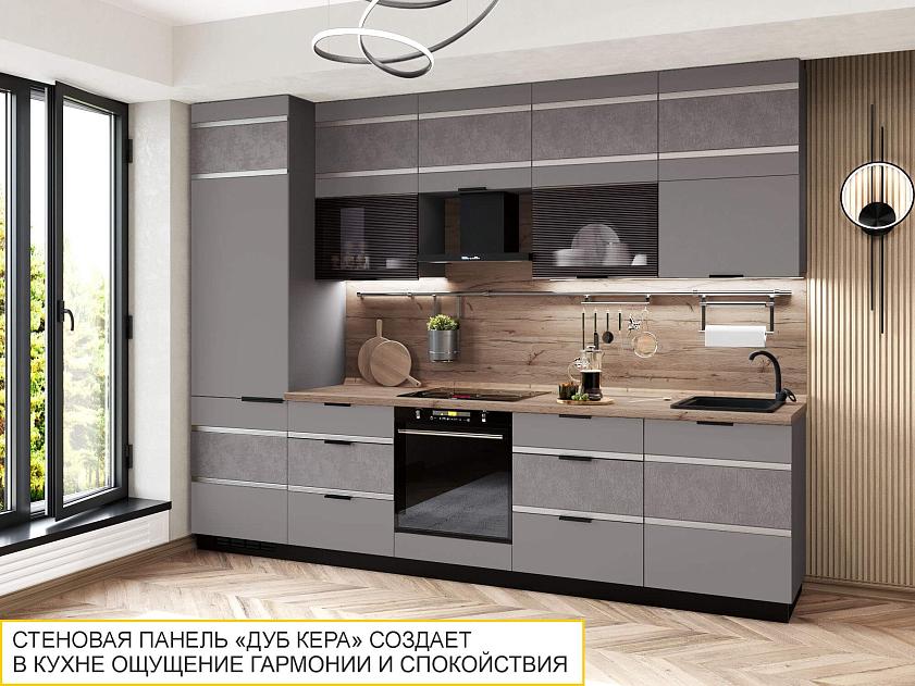 Рисунок стеновой панели «Дуб Кера» имитирует текстуру натуральной древесины, создавая в кухне ощущение гармонии и спокойствия.