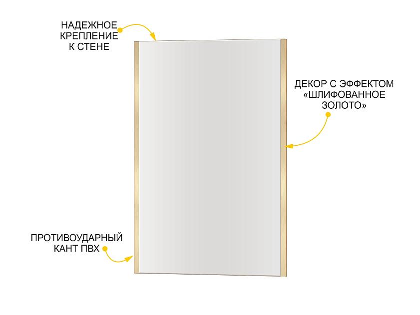 Зеркальное полотно декорировано металлизированным кантом с эффектом шлифованного золота, что подчеркивает утонченный внешний вид изделия.