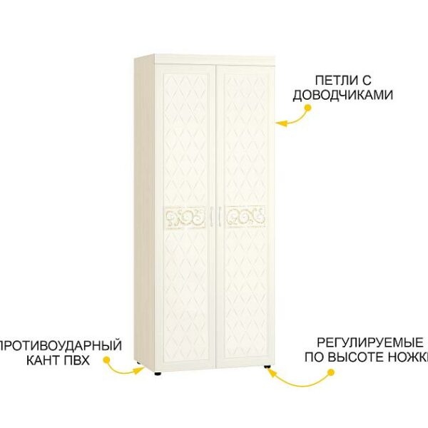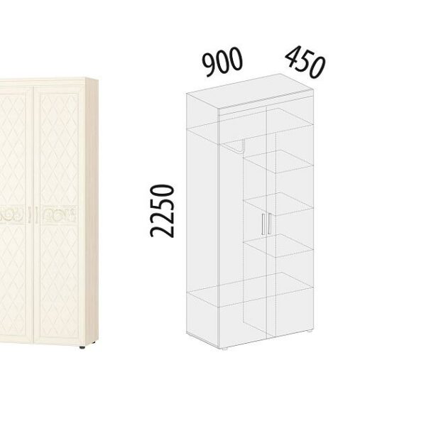 Паспарту — декоративная рамка, которая визуально увеличивает толщину боковин шкафа, придавая ему благородный внешний вид. Паспарту входит в комплектацию трехдверного шкафа «Кашемир 900.12» и четырехдверного шкафа «Кашемир 900.14».