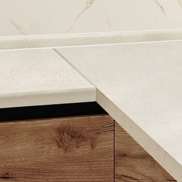 Таким образом, планка защитит торцевой срез столешницы от повреждений, проникновения влаги, пыли и влияния высоких температур, а также придаст конструкции завершенный вид.