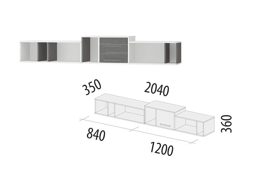 Полка состоит из двух отдельных самостоятельных модулей шириной 840 мм и 1200 мм, что позволяет создать индивидуальный дизайн комнаты.