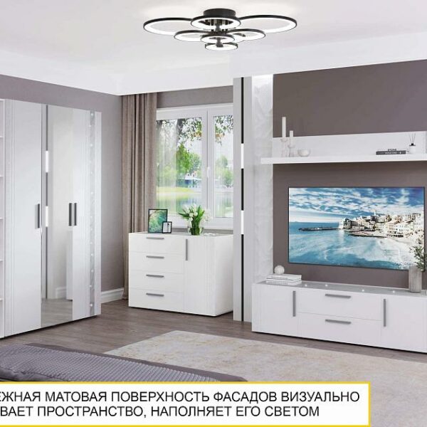 Мебель выполнена из ЛДСП и МДФ повышенной прочности. Материал устойчив к механическому истиранию и термическому воздействию. Выдерживает многократную сборку – при переезде не возникнет проблем.