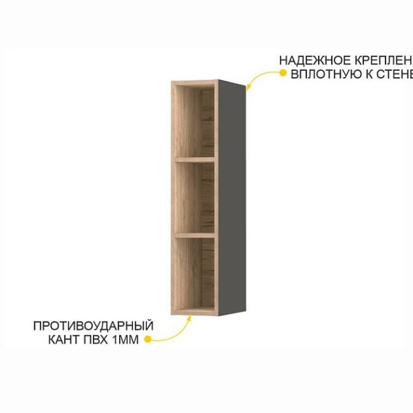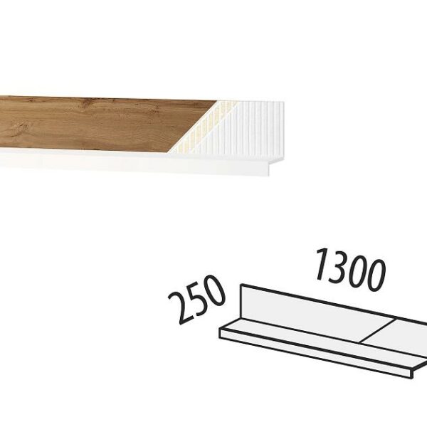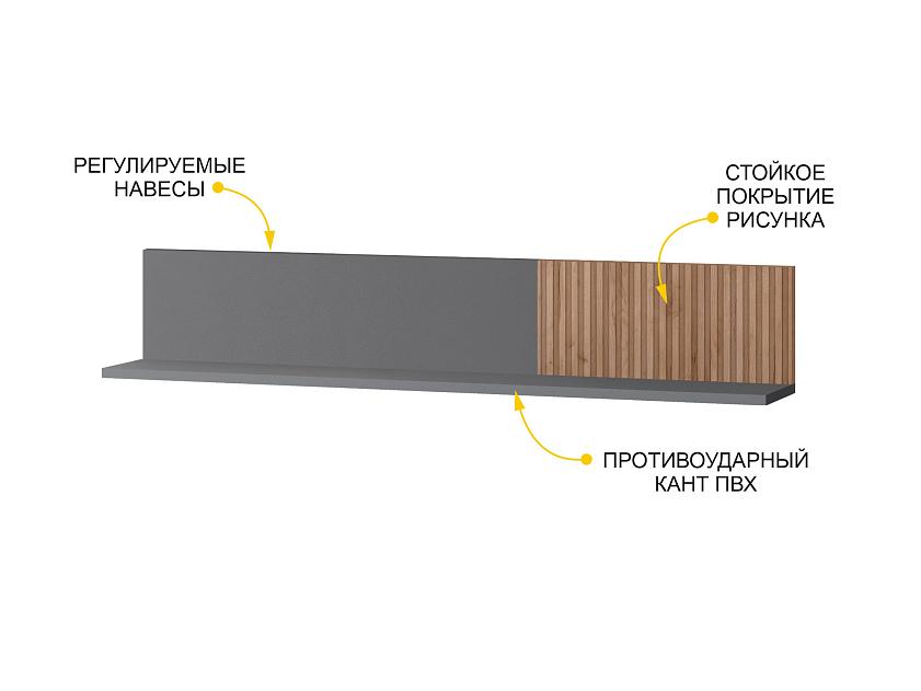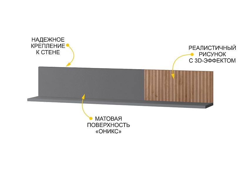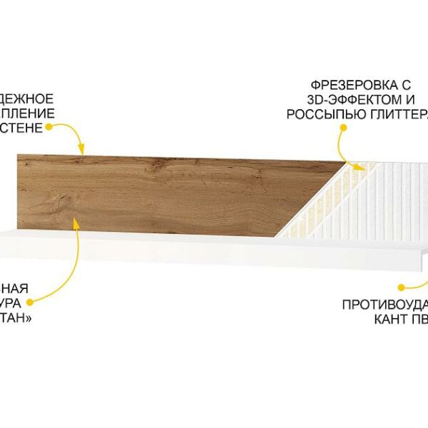 Полка декорирована рисунком с реалистичным 3D-эффектом. Он делает интерьер выразительнее, наполняет его жизнью, а натуральный медовый цвет дерева «Дуб Вотан» добавляет тепла и комфорта.