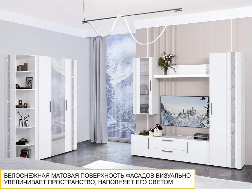 Белоснежные матовые фасады и нежно-серый мерцающий декор «мрамор» – визитная карточка этой коллекции. Конструктив и дизайн модели продуман до мелочей.