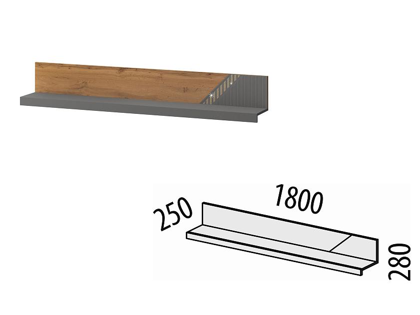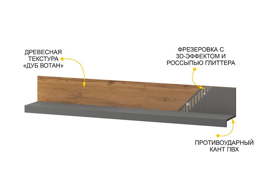 Полка декорирована вставкой со стильной фрезеровкой и объемным 3D-рисунком, а также россыпью глиттера.