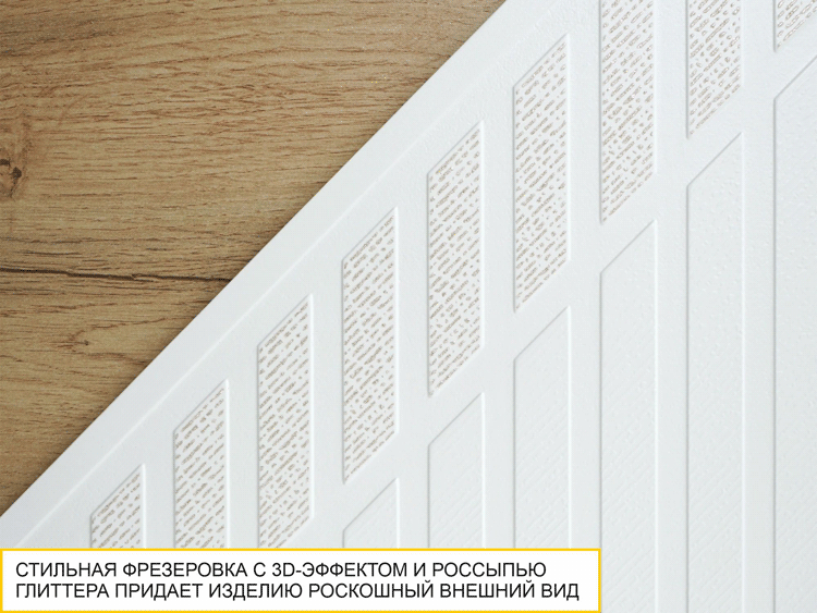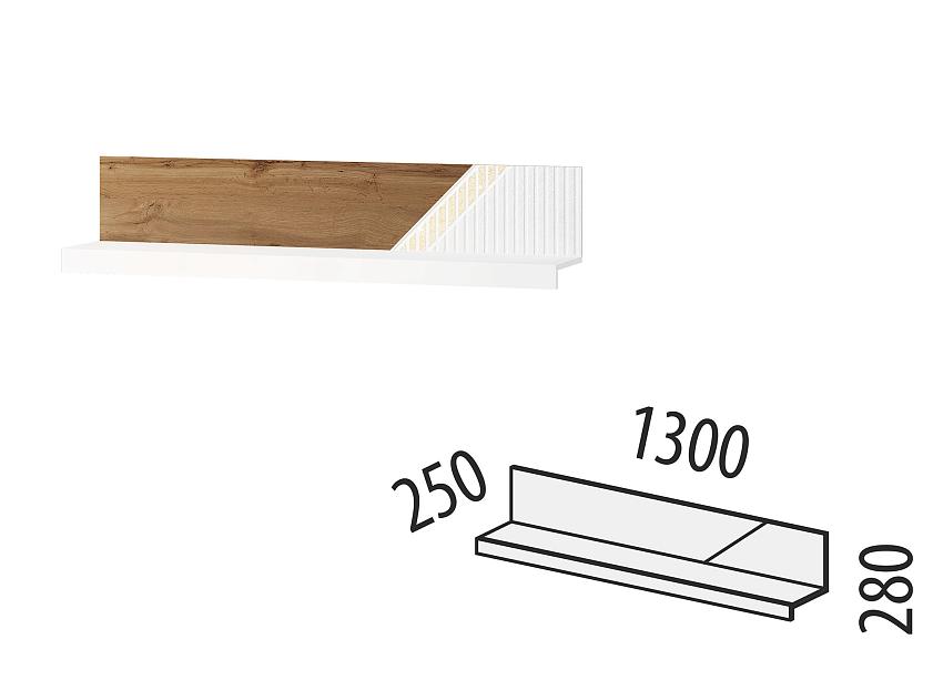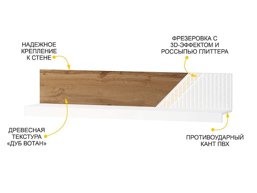 Полка декорирована вставкой со стильной фрезеровкой и объемным 3D-рисунком, дополненным россыпью глиттера.