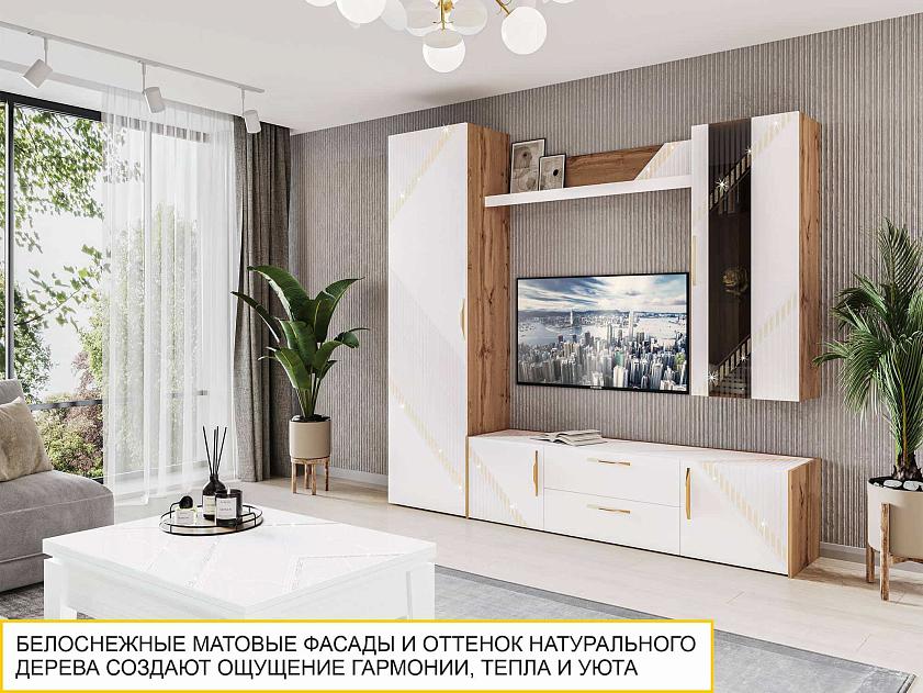 Сочетание матовой белоснежной поверхности фасадов с благородной древесной текстурой подчеркивает утонченный дизайн коллекции.