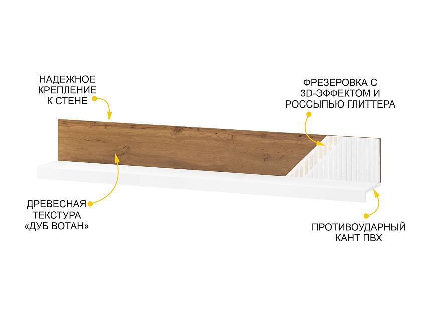 Полка декорирована вставкой со стильной фрезеровкой с объемным 3D-рисунком и россыпью глиттера.
