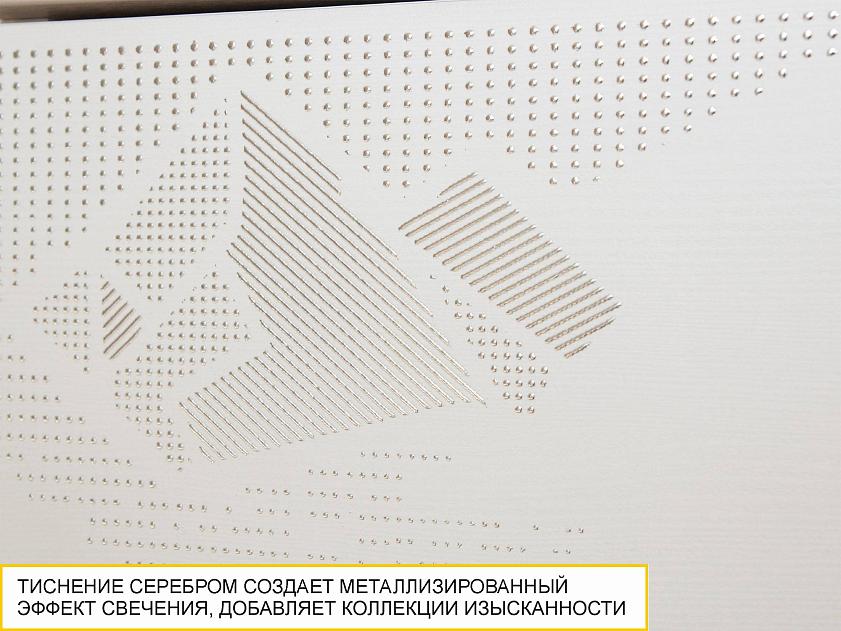 Тиснение серебром создает металлизированный эффект свечения, придает изысканность и оригинальность коллекции.