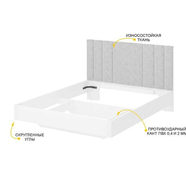 Кровать выполнена в современном стиле, что подчеркивается модным конструктивным решением: эффектом «парящей» кровати. Скругленные углы обеспечивают безопасность и комфорт.