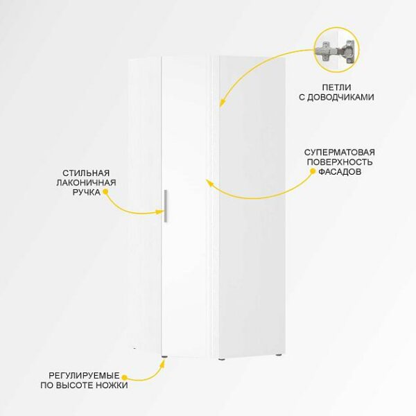 Регулируемые по высоте ножки позволяют при установке шкафа компенсировать возможные неровности пола.