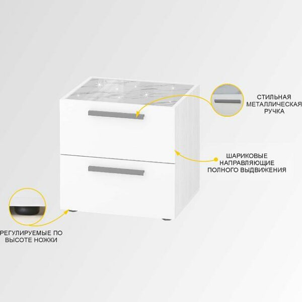 Прикроватная тумба с высокими вместительными ящиками и направляющими полного выдвижения обеспечивает удобное хранение необходимых вещей