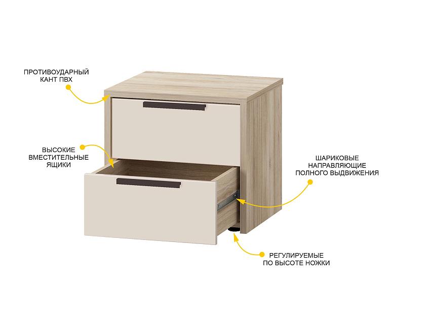 Прикроватная тумба с высокими вместительными ящиками и направляющими полного выдвижения обеспечивает удобное хранение необходимых вещей.