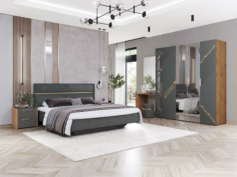 Спальный гарнитур «Монако 902 103» — это образец элегантного стиля и утонченного вкуса. Сочетание матовой графитовой поверхности фасадов с благородной древесной текстурой создает особую атмосферу гармонии и комфорта.