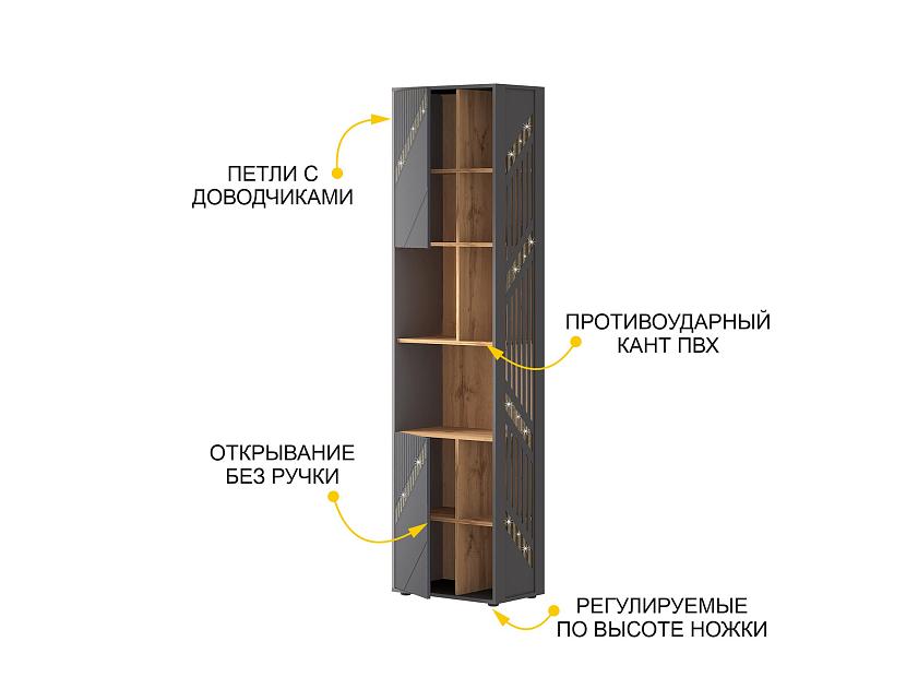 Шкаф оснащен штангой для хранения одежды на плечиках и полками, что позволяет организовать продуманную систему хранения, а резная решетка из МДФ с россыпью глиттера визуально делает конструкцию изделия более легкой и воздушной.