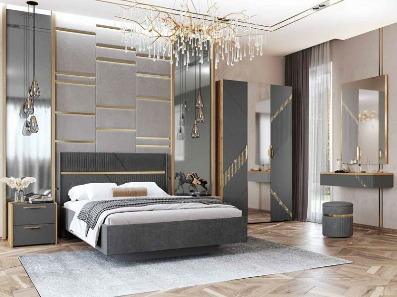Спальный гарнитур «Монако 902 104» — это образец элегантного стиля и утонченного вкуса. Сочетание матовой графитовой поверхности фасадов с благородной древесной текстурой создает особую атмосферу гармонии и комфорта.