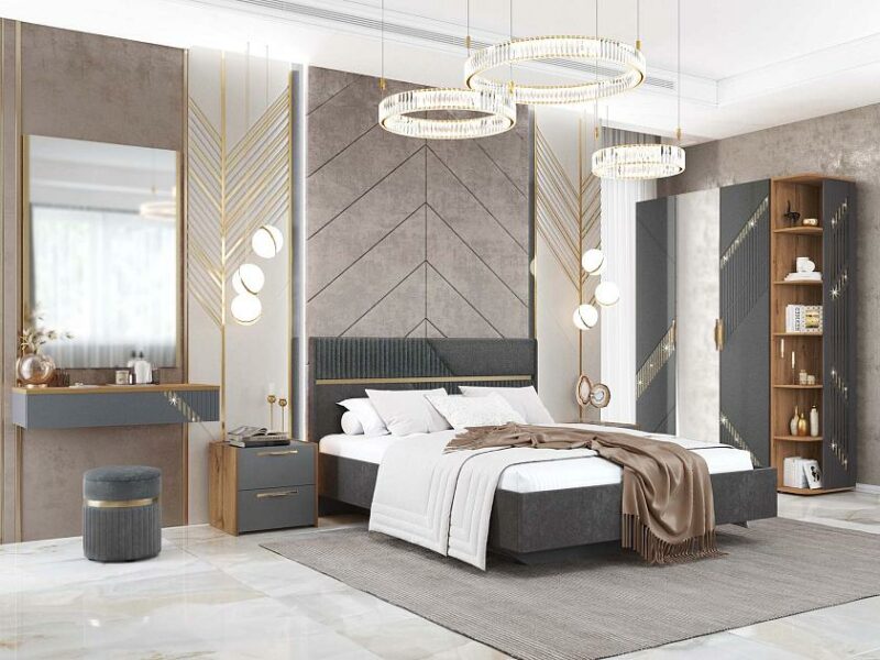 Спальный гарнитур «Монако 902 118» — это образец элегантного стиля и утонченного вкуса. Сочетание матовой графитовой поверхности фасадов с благородной древесной текстурой создает особую атмосферу гармонии и комфорта.