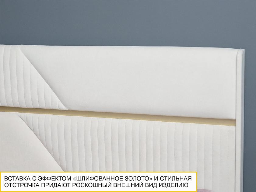 Стильная отстрочка в сочетании с металлизированной декоративной вставкой с эффектом шлифованного золота придают кровати и пуфу изысканный внешний вид.