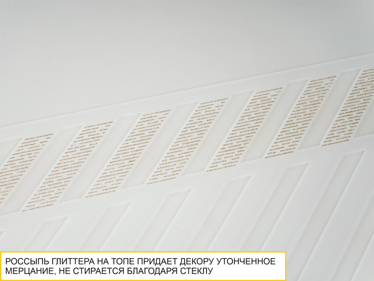 который плавно переходит в рисунок на фасаде. Благодаря наличию стекла на крышке комода глиттерный рисунок не стирается и не выцветает со временем.