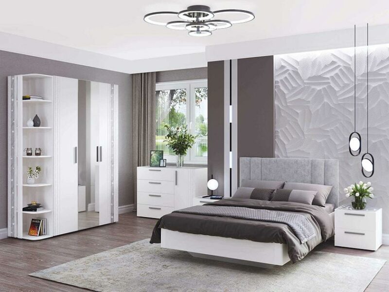 Спальня «Николь» – это сочетание безупречного дизайна и неповторимой атмосферы комфорта. Белоснежный цвет и