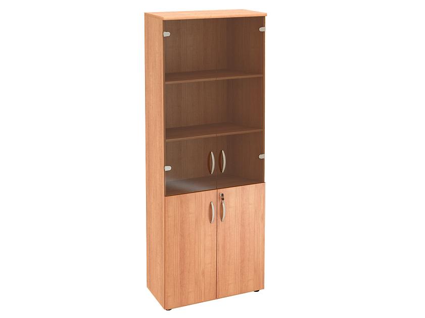Стеллаж «Альфа 61 533» является частью модульного набора мебели «Альфа». Укомплектован стеклянными и глухими дверцами. Модуль разделен полками на пять секций. Устойчивость конструкции придают межсекционные стяжки. Регулируемые по высоте ножки компенсируют возможные неровности пола.